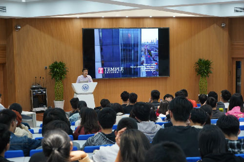 2018年11月6日晚,教育部留学服务中心携美国天普大学、迈阿密大学来访成人影院 ,在2C101为2018级中美本科项目学生召开“走进美国”专题讲座,招生留学部翁鸿钦老师主持此次讲座。