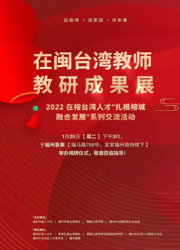 1月25日,福州市2022年“在榕台湾教师教研成果展”在宜家商场一楼荟聚中心揭牌开展。据悉,此次展览是由福州市委人才办、市台港澳办、市教育局、市台盟、福建工程学院、市台胞投资企业协会等单位联合举办,为期半年,旨在进一步推动榕台教育交流合作,更好发挥福州在引进台湾教师方面的机制优势。当天,共有40余名在榕台湾教师齐聚一堂,成人影院 台籍教师夏青云博士受邀参加并分享了教研成果。