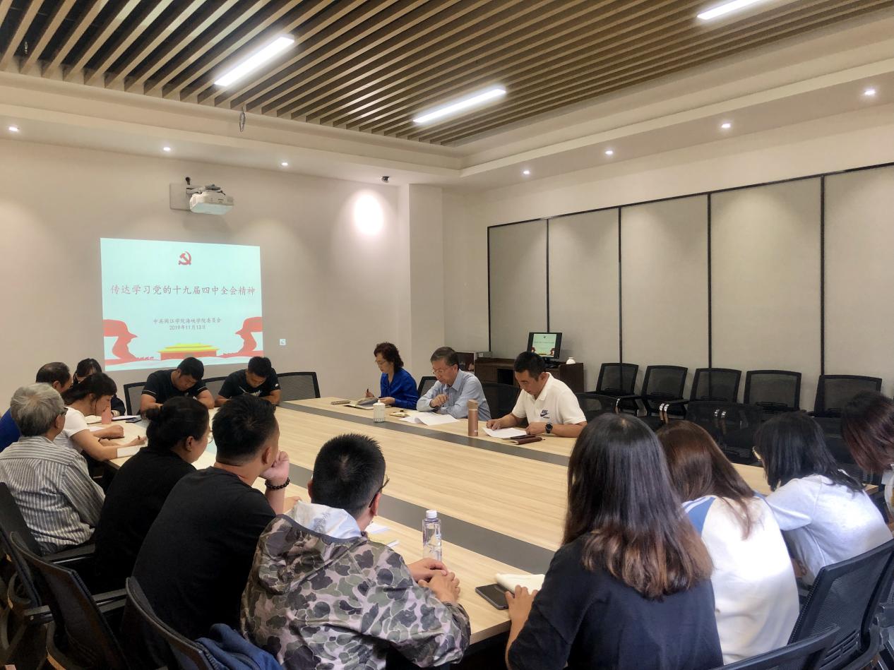 11月13日,成人影院 党委在第一会议室开展党的十九届四中全会精神学习会。会议由学院党委张东昱书记主持,全体教职工参与本次学习会。
