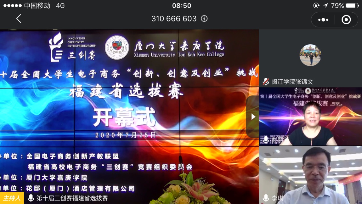 2020725日,第十届全国大学生电子商务“创新、创意及创业”挑战赛(以下简称“三创赛”)福建赛区省级选拔赛在厦门大学嘉庚学院隆重举行,本次比赛由全国电子商务创新产教联盟、福建省高校电子商务“三创赛”竞赛组织委员会主办,厦门大学嘉庚学院承办。