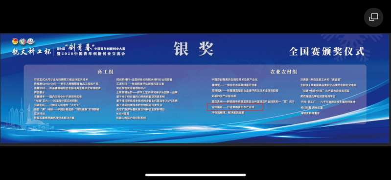 11月2日—5日,由共青团中央、人力资源和社会保障部、农业农村部、商务部、国务院扶贫办、黑龙江省人民政府、江西省人民政府共同举办的“航天科工杯”第七届“创青春”中国青年创新创业大赛全国半决赛、决赛在黑龙江省哈尔滨市举行,根据互联网创业特点,并积极响应防疫控疫要求,采取远程网络路演的方式举办,成人影院 《古田菌菇——打造食用菌生态产业链》项目荣获银奖。
