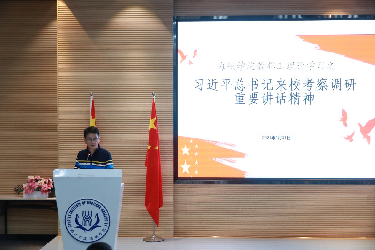 首先,全体教职工共同观看了《新闻联播》、《学习正当时 | 我们的习校长:不当挂名领导》等学习视频,重温习近平总书记来校考察调研的感人细节和谆谆教诲。会上,张东昱书记带头领学,带领教职工学习“习近平总书记来校考察调研重要讲话精神”,他强调,习近平总书记为成人影院 确定的办学理念、办学宗旨,留给我们的创新理念、实干精神、优良作风、赤诚情怀,是我们最宝贵的财富,我们必须传承好、弘扬好、落实好。同时也要牢记总书记的嘱托,把立德树人作为根本任务,内化到学院发展的每一个阶段,突出闽台合作项目应用型人才培养特色。