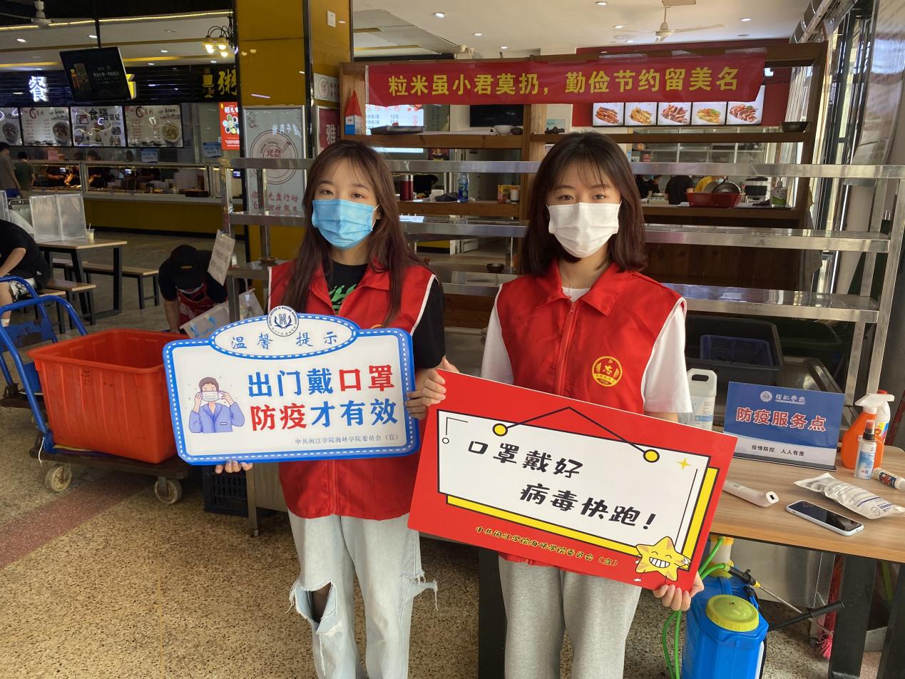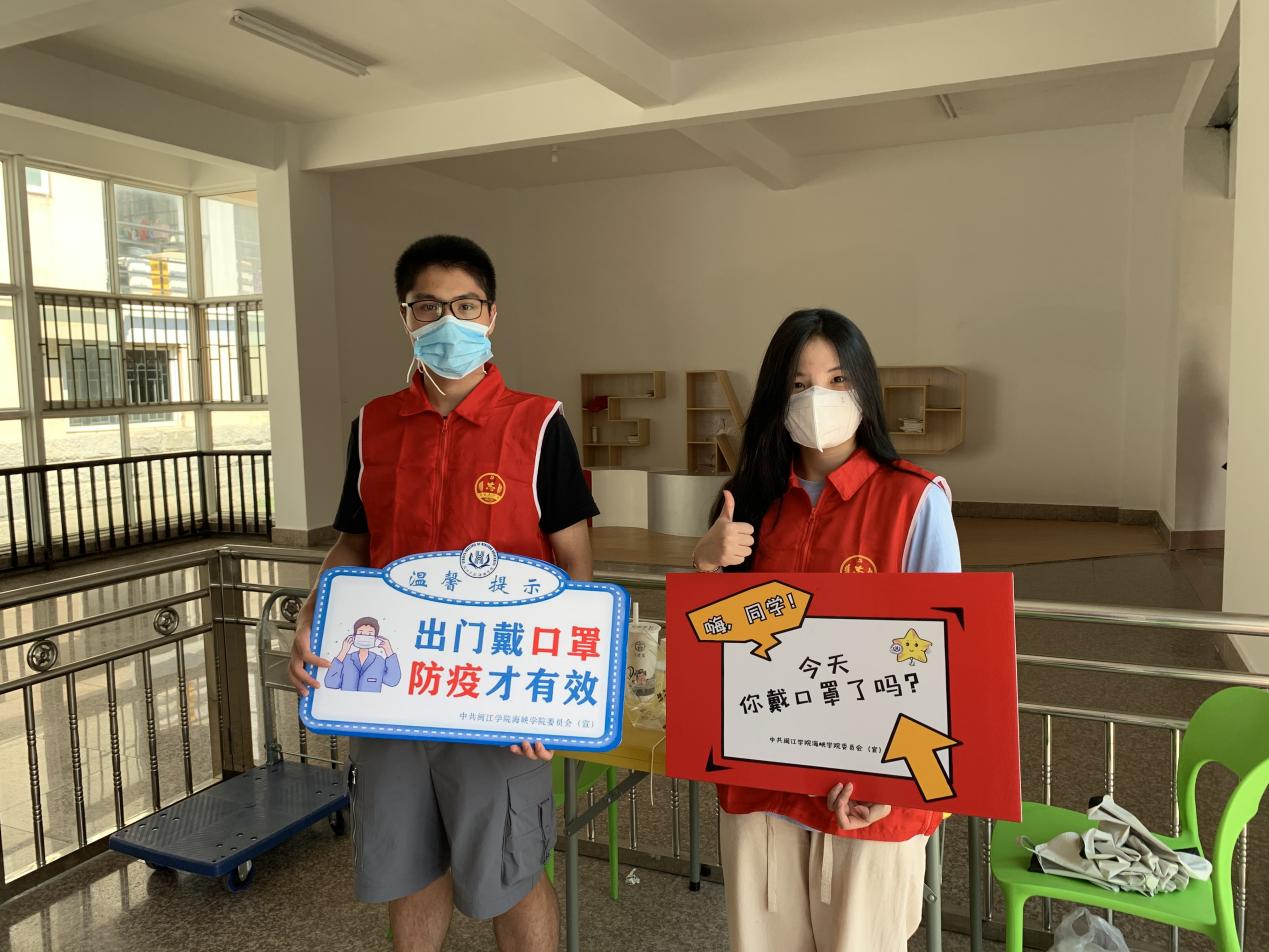 近日,在学院党委的统筹安排下,各学生党支部开展“抗‘疫’有我,‘疫’不容辞”志愿服务活动。“您好,请佩戴口罩,保持安全距离哦。”学生党员志愿者身穿红色马甲,在宿舍楼、食堂等公共场所轮流值守,提醒师生佩戴好口罩,加强个人卫生防护,提升疫情防控意识。