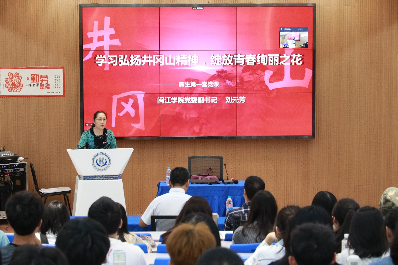 伟大的事业需要伟大的精神,伟大的精神托举伟大的梦想。为学习宣传中国共产党人的精神谱系,赓续共产党人精神血脉,10月20日,成人影院 党委特邀校党委常委、党委副书记、工会主席刘元芳教授为2021级全体新生做《学习弘扬井冈山精神 绽放青春绚丽之花》专题讲座,讲座由院党委书记张东昱主持,以主会场(2C101)线下报告、分会场线上直播的方式开展。