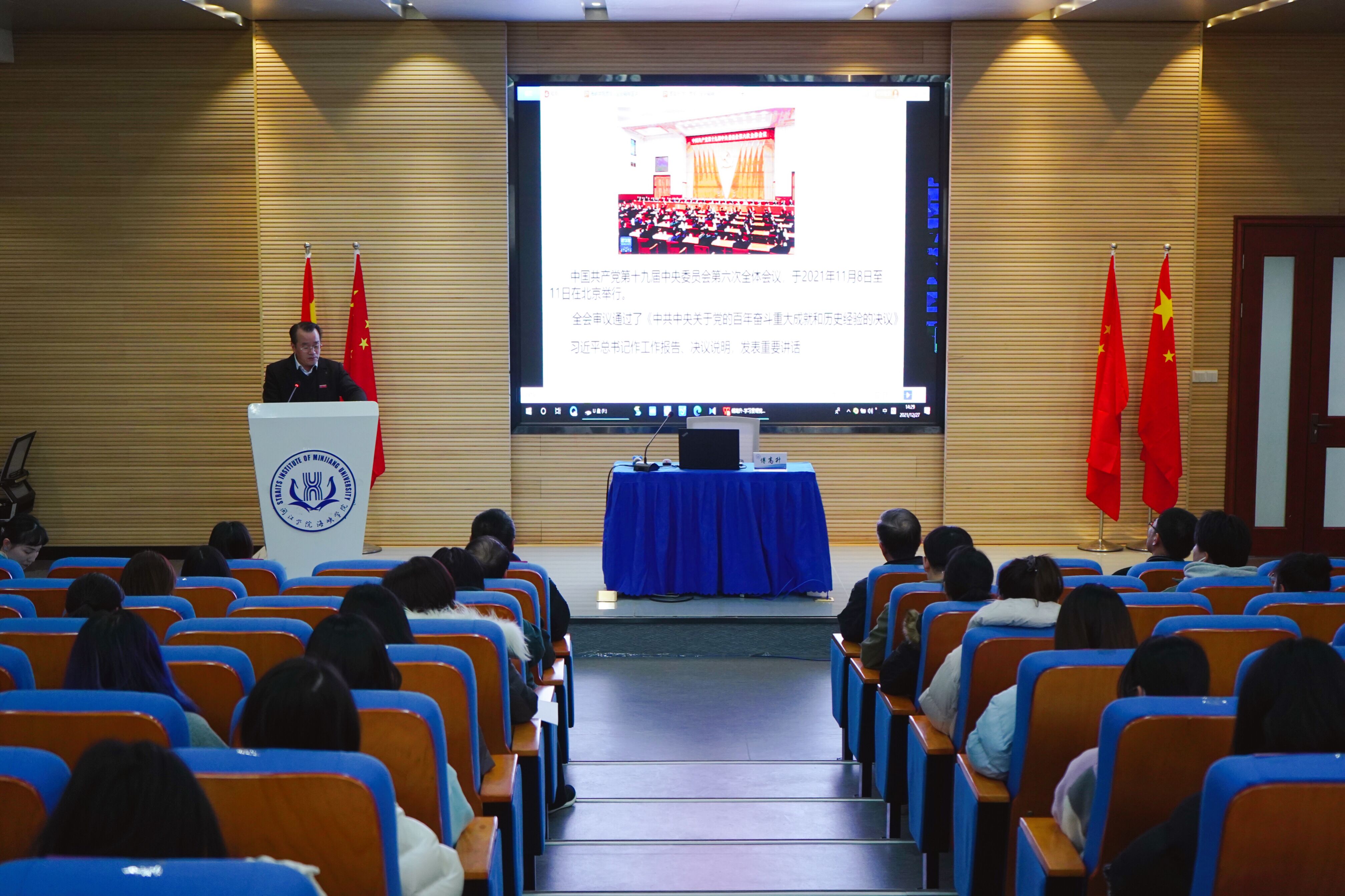 在学术报告厅举行党的十九届六中全会精神宣讲会。成人影院
