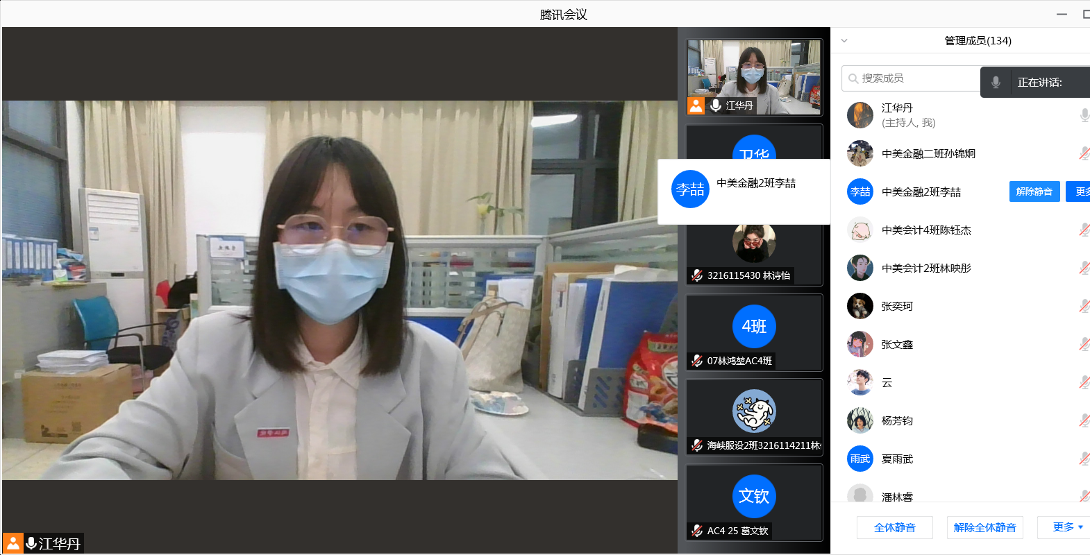 学院及时组织线上教学,重点做好学生在校内参与线上教学的服务工作,实现线下教学与线上教学的随时切换、无缝衔接。3月18日起,共计279门课程转为线上授课,教师根据课程需要选择钉钉群直播、腾讯会议、QQ群课堂等方式进行直播授课。教务部组织任课老师建立220个QQ群交流平台,教学秘书、班主任及辅导员加入各班级课程联系群,及时为师生提供技术支持和答疑服务,督查教学情况,确保“停课不停教,停课不停学”。经统计,近日线上教学出勤率达95%以上,整体线上教学运行平稳有序。