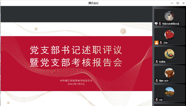 1月6日,成人影院 党委通过腾讯会议线上召开2022年度党支部书记述职评议暨党支部党建工作考核报告会,成人影院 党委委员、各党支部书记参与本次报告会,会议由党务秘书黄梦琳主持。
