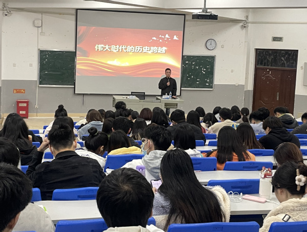陈纯副书记以伟大时代的历史跨越为主题新时代有新作为新成就用好有利条件走好必由之路’”入手站在新的历史发展方位多方面分析新时代的新成就,带领同学们深入领会新时代的历史性变革课程内容深入浅出,结合当下时政热点将形势与政策课讲深、讲透、讲活