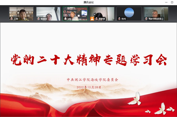 1028日下午,成人影院 通过腾讯会议线上召开党的二十大精神专题学习会,院党委书记张东昱领学党的二十大精神,并传达学习省委、市委常委会及校党委常委(扩大)会议精神本次会议由院党委副书记陈纯主持,学院全体教职工参会,罗畅、许德翔、吴茫三位老师分享学习心得。
