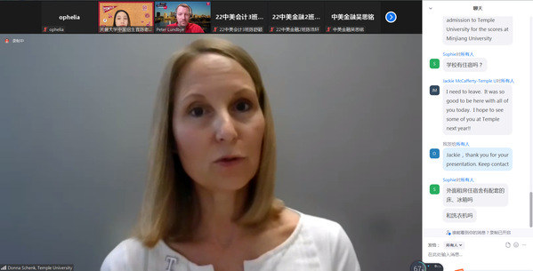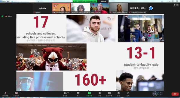 3月22日晚,成人影院 通过zoom举办了一场精彩的云端留学分享会,邀请到来自美国天普大学的国际招生主任Peter Lundbye、美国文化语言中心主任Jacqueline McCafferty、国际生转学申请副主任Donna Schenk及天普大学驻中国办公室招生官陈琳为2022级中美项目全体学生开展一场“天普大学漫谈”主题留学分享会。