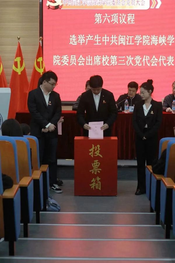 本次大会应到正式党员123人,实到正式党员101人,符合规定人数。院党委副书记陈纯宣读了校党委关于中共成人影院 委员会推荐出席校第三次党代会代表候选人预备人选的批复文件。与会党员充分发扬党内民主,认真履行职责,以举手表决方式通过了选举办法、代表候选人名单、总监票人、监票人名单。最后以无记名投票方式,差额选举产生8名出席校第三次党代会的成人影院 代表。计票期间,学院党委开展党员廉洁教育,组织参会党员观看《清廉中国》系列短视频。大会在雄壮的《国际歌》歌声中圆满结束。