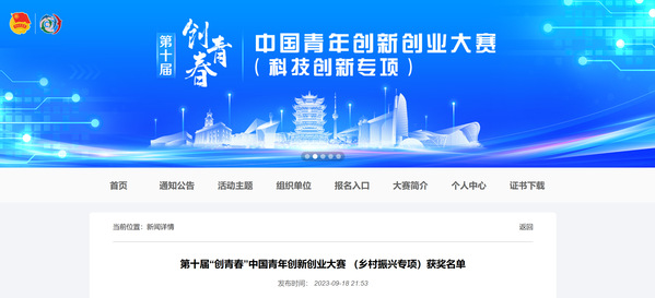 图为第十届第十届“创青春”中国青年创新创业大赛官网截图