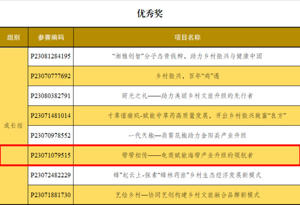 图为《带带相传一-电商赋能海带产业升级的领航者》获成长组优秀奖