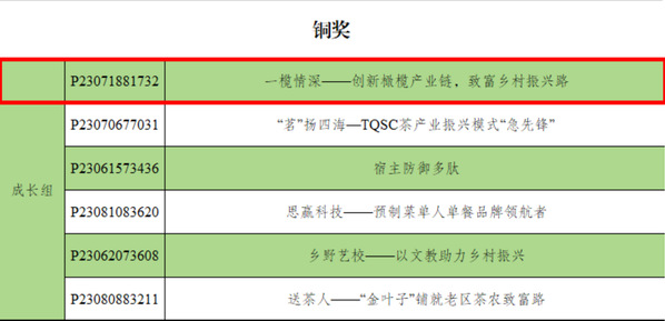 图为《一榄情深—创新橄榄产业链,致富乡村振兴路》获成长组铜奖