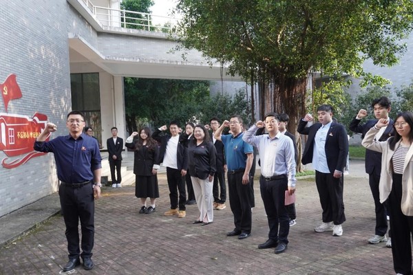 3月24日,成人影院 师生党员汇聚一堂,怀着激动的心情,共同开展“铮铮誓言心向党,牢记嘱托再出发”——重温习近平总书记回校考察重要讲话精神主题党日活动暨入党宣誓仪式。成人影院 党委副书记洪晓林、副书记孙维鹏、副院长翟绪军、各学生党支部书记、入党介绍人及新发展党员参与活动。
