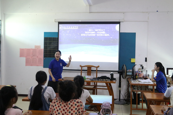7月11日至12日,成人影院 师生先后在上攀村、钟门村开设“我们的南岛语族文化”公益课堂。这场课堂不仅是一次文化的传承之旅,更是一场心灵与智慧的碰撞盛宴。成人影院 师生团队打造“原创绘本故事+科普+手作”三位一体授课模式,以团代少,传播文化故事。从儿童视角出发,创作极具奇幻色彩的童话故事——“勇敢的星光日”,以孩子们喜闻乐见的奇幻冒险为主题,巧妙融入南岛语族的历史传说,导入南岛语族文化课堂,带领孩子们感受南岛语族文化的深厚底蕴;从科普角度出发,用通俗易懂的语言、图文并茂的展示和互动问答的方式,帮助孩子们进一步提升对南岛语族文化的认知;从实践角度出发,手工制作的方式带领孩子们掌握对南岛语族图纹元素的运用,深化南岛语族文化对新一代的影响力度,树立文化自信和民族自豪感。