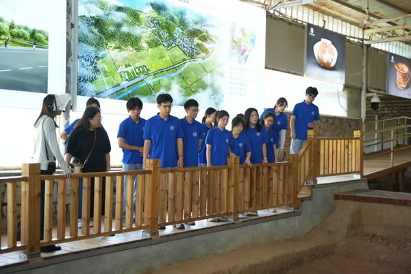 7月11日,成人影院 师生走进平潭国际南岛语族研究基地,探究作为连接两岸文化认同的坚实桥梁——南岛语族。在平潭国际南岛语族研究基地内,师生实地考察龟山遗址群的挖掘工作现场,亲眼见证证明海峡两岸同根同源的陶器碎片,这些碎片拼接成一段辉煌的历史,跨越千年岁月,将南岛语族故事娓娓道来。随着讲解员生动而详尽的介绍,学院师生感受着两岸先民的文化关联和交流互动,品味古代文明的丰富内容和深刻内涵。成人影院 师生通过实地考察遗址、观察文物、聆听解说等方式增强对壳丘头遗址群与台湾大坌坑遗址的共性剖析,直观感受南岛语族起源、迁徙、扩散的过程。