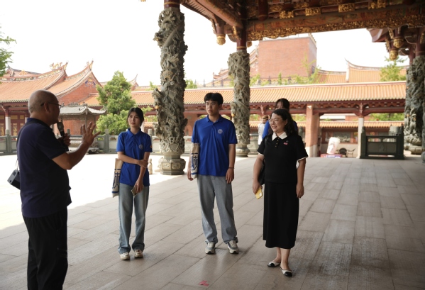 昆山拥有华东地区规模最大、集两岸之力建造而成的妈祖庙。研习社成员前往昆山慧聚广场,走近长三角地区台商台胞的精神家园。在这里,闽南式的古建风格使研习社成员置身其中,感受着浓浓的亲切感。除了天后宫之外,慧聚广场还拥有文化广场、两岸文化交流中心、妈祖文化主题公园、两岸风情街等特色点,“台味”满满。研习社成员深刻感受到,两岸的文化在这里充分展现,南腔与北调在这里共融共鸣,两岸的亲情在这里不断延续。