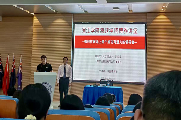 1011日,台湾科技大学许重博教授应邀莅临海峡博雅讲坛,开展题为“如何在职场上做个成功有魅力的领导者”的讲座,讲座由成人影院 思政辅导员林纪主持。