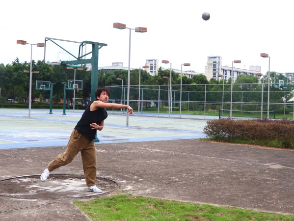 铅球在运动员手中闪着耀眼的光芒,挥舞的手臂爆发出排山倒海的气势,一托一举一间,一道完美的弧线一闪而过,“铅”钧一发。