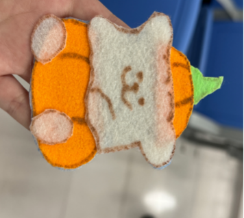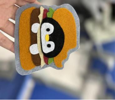 完成后,大家又迫不及待地踏上不织布冰箱贴的制作之旅,先设计并裁剪出自己心中的图案,再用酒精胶水粘贴,最后贴上磁吸贴片,动物、卡通人物、字母等各种各样图案的冰箱贴在同学们的巧手下诞生。