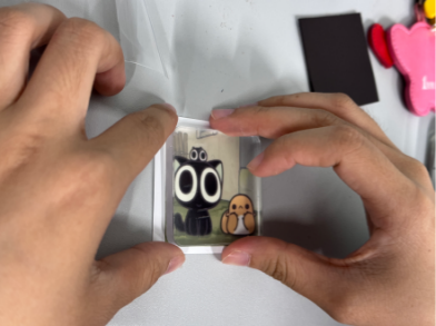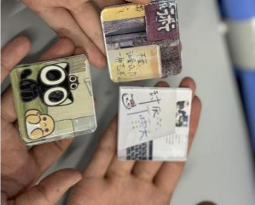 活动伊始,协会负责人介绍了本次活动的目的和意义,并鼓励大家发挥想象力,创作出属于自己的独特作品。制作过程中,每一步都像是在精心雕琢一件独特的艺术品。从裁剪磁吸贴片和双面胶薄膜,到粘贴亚克力板、打印好的图片和磁吸贴片,再到修剪冰箱贴形状,同学们都一丝不苟。
