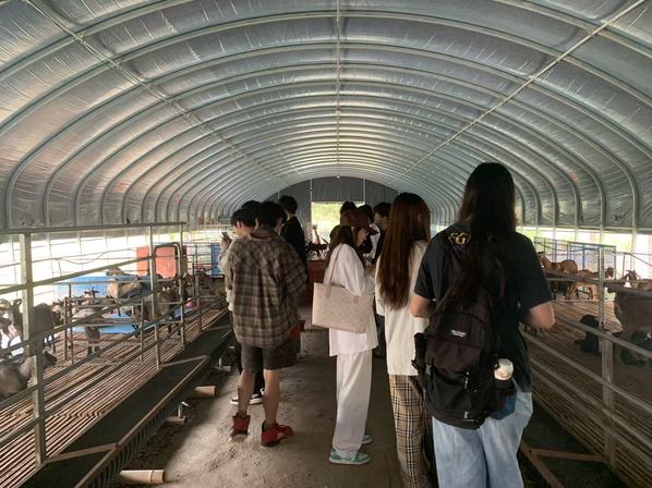 永泰珍农菌草富泉羊循环产业示范基地项目是以国家菌草工程技术研究中心首席科学家林占熺研究员团队为技术依托单位,永泰县为项目实施地,福建珍农发展有限公司投资运营。为了让同学们更加了解该农场的经营模式,福建珍农发展有限公司负责人林泽南、黄荣男、张继业、郭文木老师带领同学们参观菌草种植基地和富泉羊养殖基地,向同学们详细介绍了农场“种好一株草,养好一只羊的理念。农场通过种植菌草,不仅可以让菌草作为羊的饲料,以“草”代粮,而且还可以防沙,防止水土流失。同学们实地感受了生态农业的发展历程,进一步体悟了习近平总书记“绿水青山就是金山银山”的重要理念。