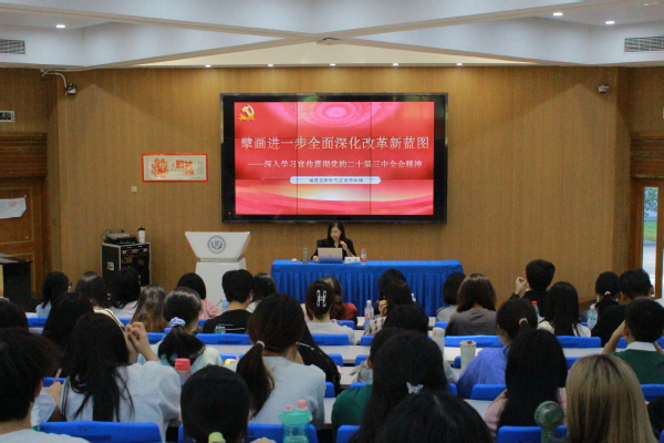 近日,成人影院 在海峡楼2C101举办“深入学习贯彻党的二十届三中全会精神”专题党课。本次党课由福建省新时代宣讲师林梅老师讲授,第29期入党积极分子培训班成员和各年级学生代表参加。