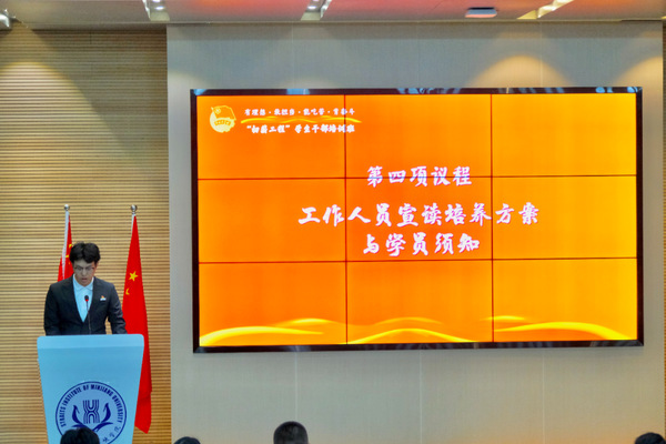 仪式上,学生团委副书记林宏泽宣读本次“初薪工程”学生干部培训班学员须知,提醒干部们遵守培训班纪律规定,积极加强自身思想提升自我综合素质。