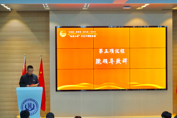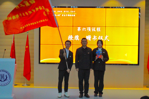随后,孙维鹏副书记代表学院党委在开班仪式上致辞,对初薪工程培训班的顺利开展与举办以及受聘学生干部表示祝贺并希望全体学员能够抓住机遇,深化思想,发挥榜样领头作用,鼓励干部们“先行一步”,积极服务老师与同学,将所学理论知识运用到实践当中,掌握正确的学习方法论,要敢于迎接挑战,勇于创新,在一次次提问中提升实干技能,夯实思想基础,在一次次实践里丰富阅历,致力于综合素养的锤炼。讲话结束后孙维鹏副书记还为培训班成员授旗并赠送书籍。