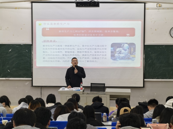 孙维鹏以“加快发展新质生产力”为主题,围绕新质生产力核心要义及推动其发展的重大意义展开深入讲解。他强调,新质生产力在当今快速发展时代中起着关键作用,他希望同学们要将所学牢记心中,并学以致用,积极投身到新质生产力的发展中,为实现国家的繁荣富强和人民的幸福生活贡献力量。