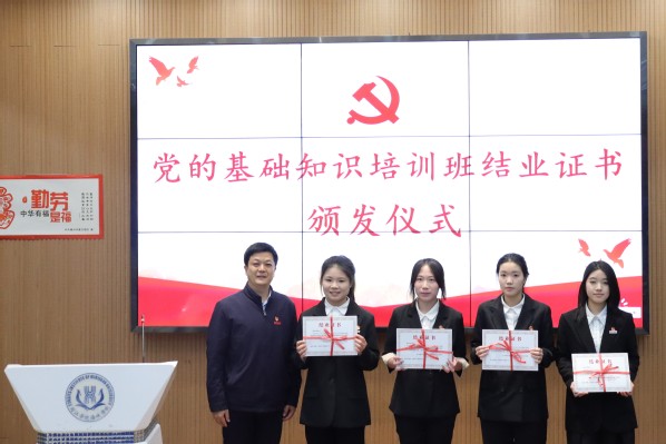 洪晓林对入党积极分子培训班学员们顺利结业表示热烈的祝贺,并代表学院党委对全体学员提出了三点希望:一是努力学习,强化党的创新理论武装;二是提高认识,自觉接受党组织的培养、教育和考察;三要忠诚担当,以实际行动争取实现入党的愿望。随后,洪晓林为学员们颁发了结业证书。